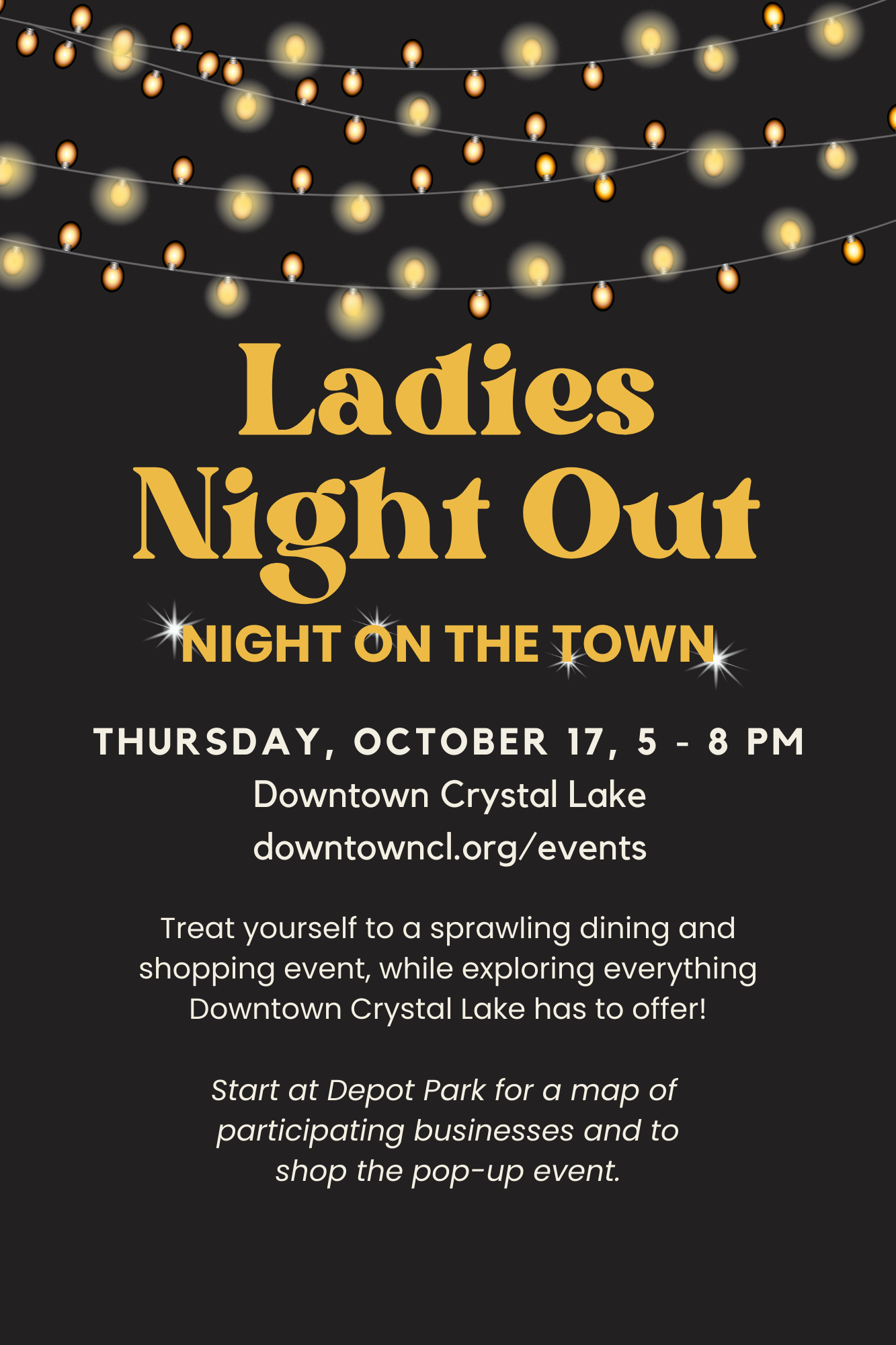 Ladies Night Out is now Night on the Town! You don’t want to miss this sprawling evening event in Downtown Crystal Lake full of specials & deals. Stop by Depot Park first for a map of participating businesses and their offers, and to shop some “off the main path” Downtown business pop-ups. Grab a group of friends, make it a date night, or just treat yourself. Downtown Crystal lake is the place to be on October 17!